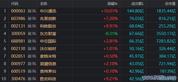 截至收盘,中兴通讯(000063)成交额达到144.8亿元,重回全市场之首;尾盘最终涨停,显示出资金强烈的做多热情。